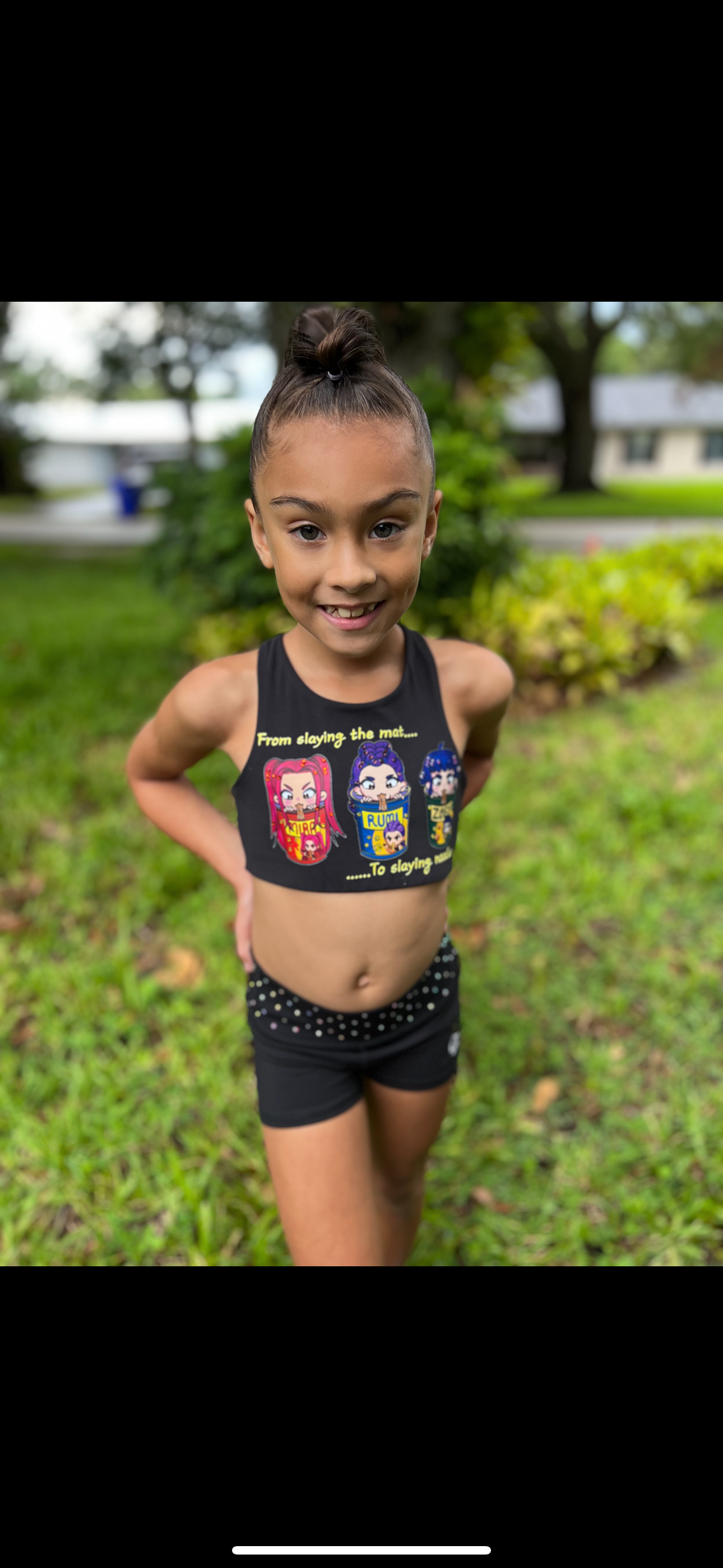 The only way I could do that was if Bring the power of the stage to the mat with our Demon Hunters Cheer Practice Set! Designed for athletes who want to train hard while looking fierce, this set combines comfort, flexibility, and bold style.